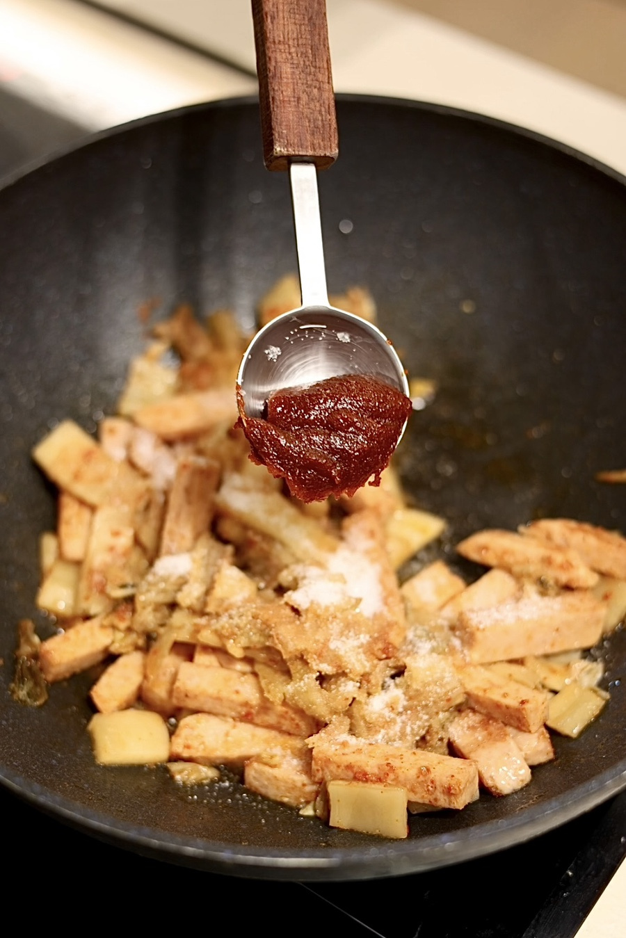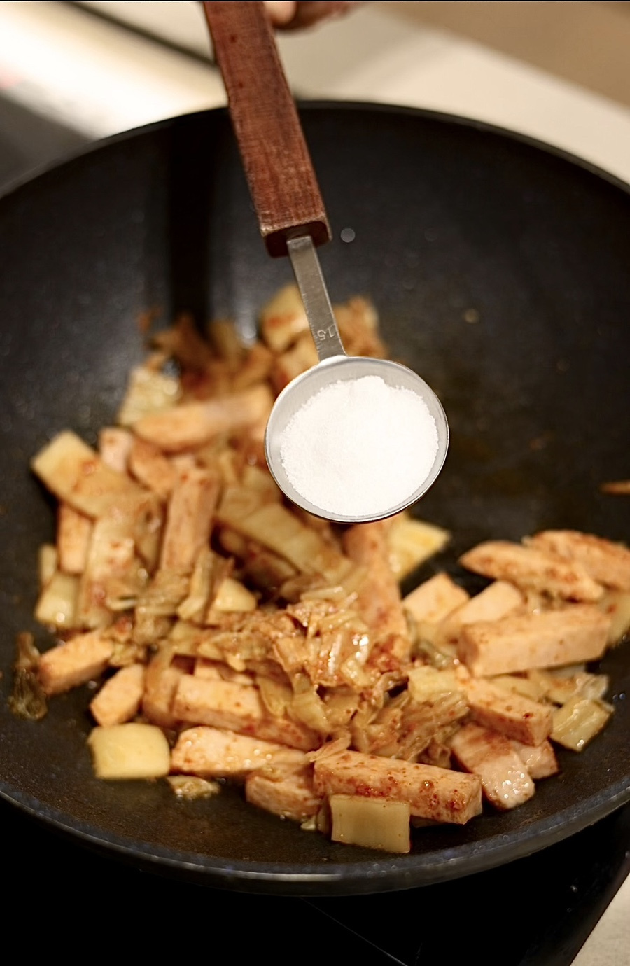- 스팸을 바삭 노릇하게 구운 팬을 그대로 사용하는 것