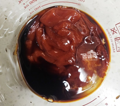 케첩 3큰술, 간장 1큰술, 올리고당(또는 설탕) 1큰술, 다진 마늘 0.5큰술을 넣고 잘 섞어주세요.