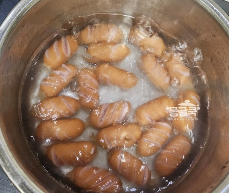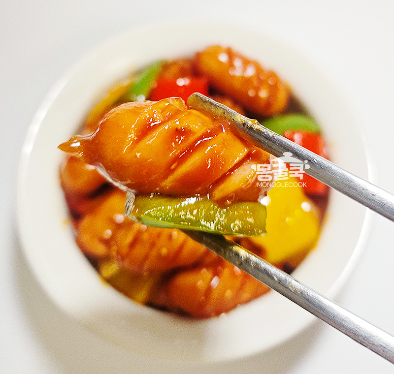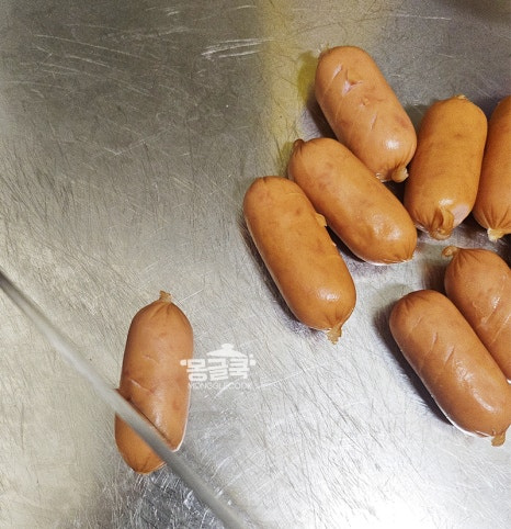 비엔나소시지는 양념이 잘 배도록 문어 모양이나 사선으로 3번 정도 칼집을 넣어주세요.