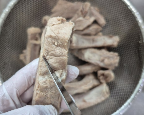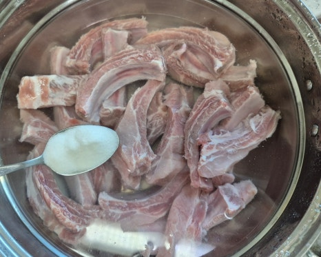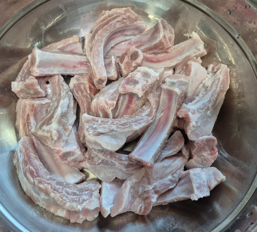 ✔️등갈비를 한번 데치면 기름기와 잡내를 제거할 수 있어요.