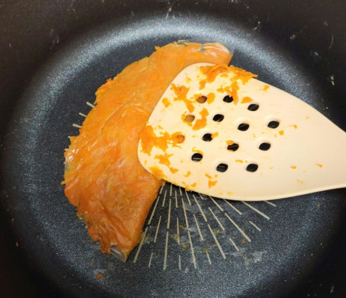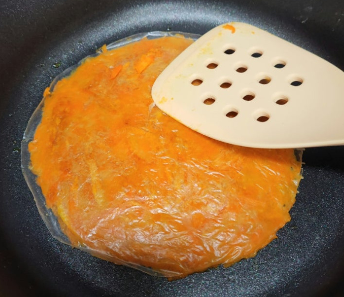 부드럽고 달달한 맛이 꽤 매력적인~ 늙은 호박전을 소개합니다. 밀가루 없이, 소량의 오일 사용, 또 고온이 아닌 중불로 만든 부침개라서~ 바삭함이 덜하기 때문에~ 형태를 잡아주기 위해 라이스페이퍼를 활용 했습니다. 또 라이스페이퍼가~늙은 호박 반죽에 잘 녹아 붙으면서 더 쫀득한 식감까지 더해집니다. "라이프페이퍼 늙은 호박전"~~ 별미 겨울 간식이자 건강 간식으로 추천합니다.