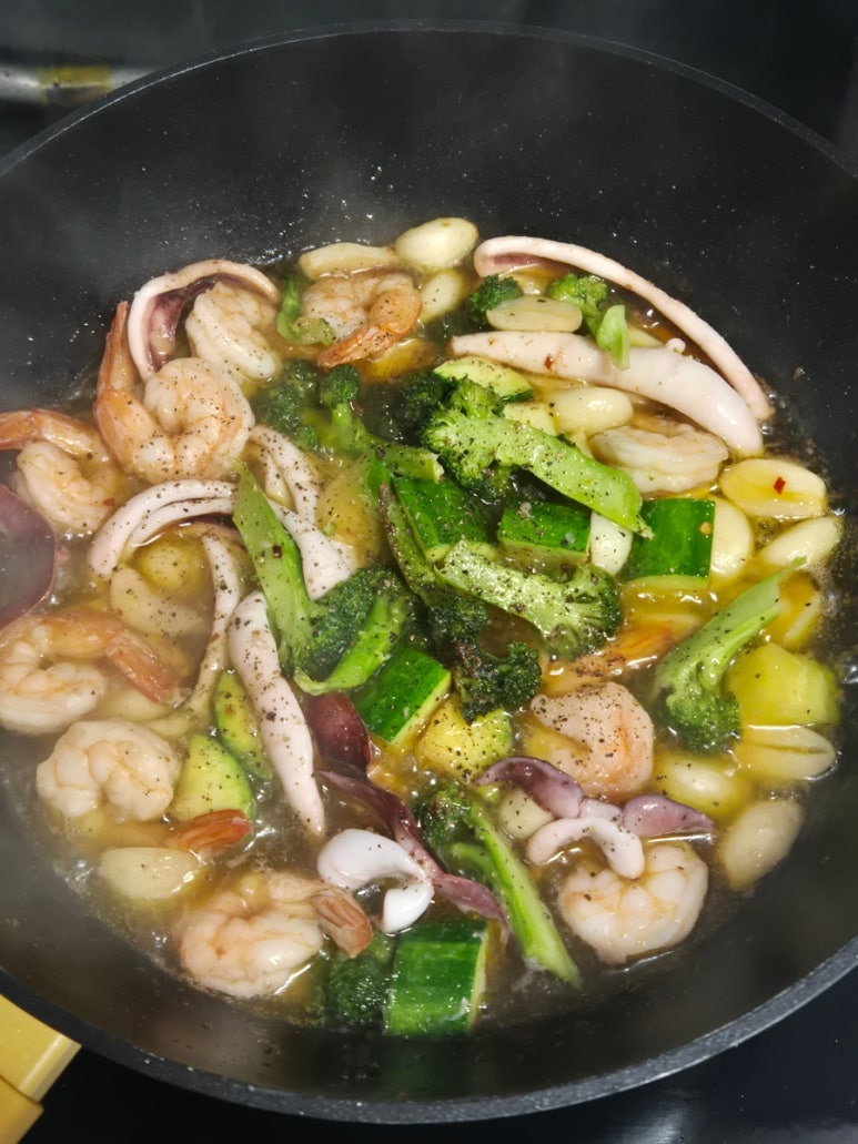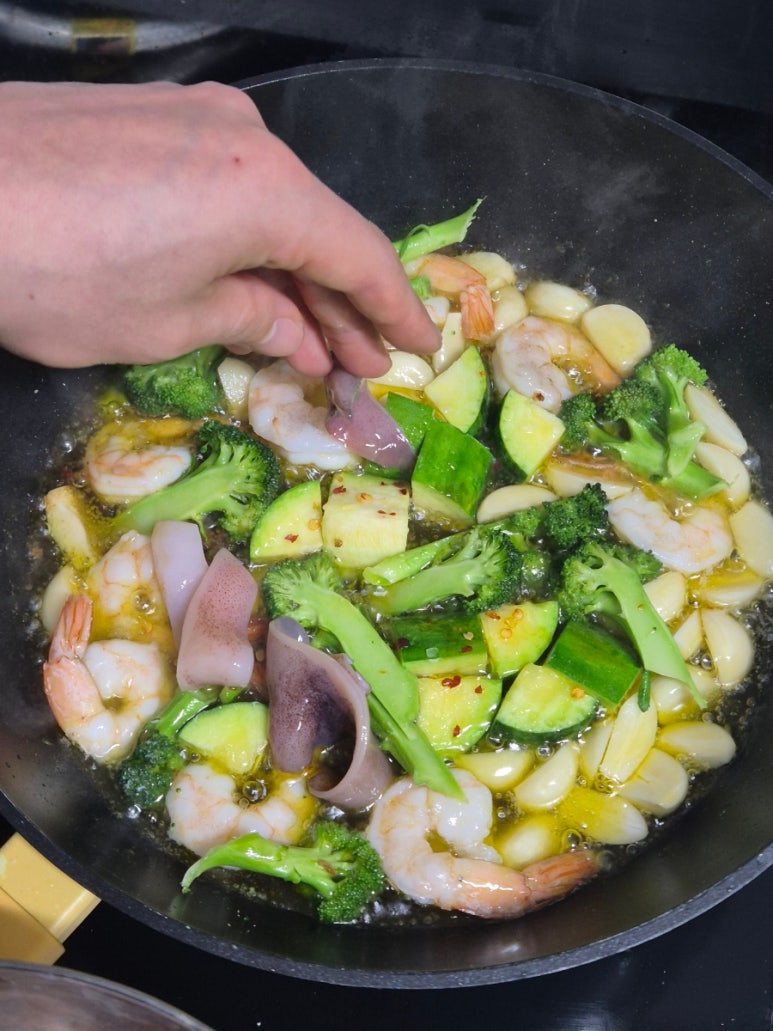 요리하고 남은 오징어까지 듬뿍 넣어 만들어봤어요.