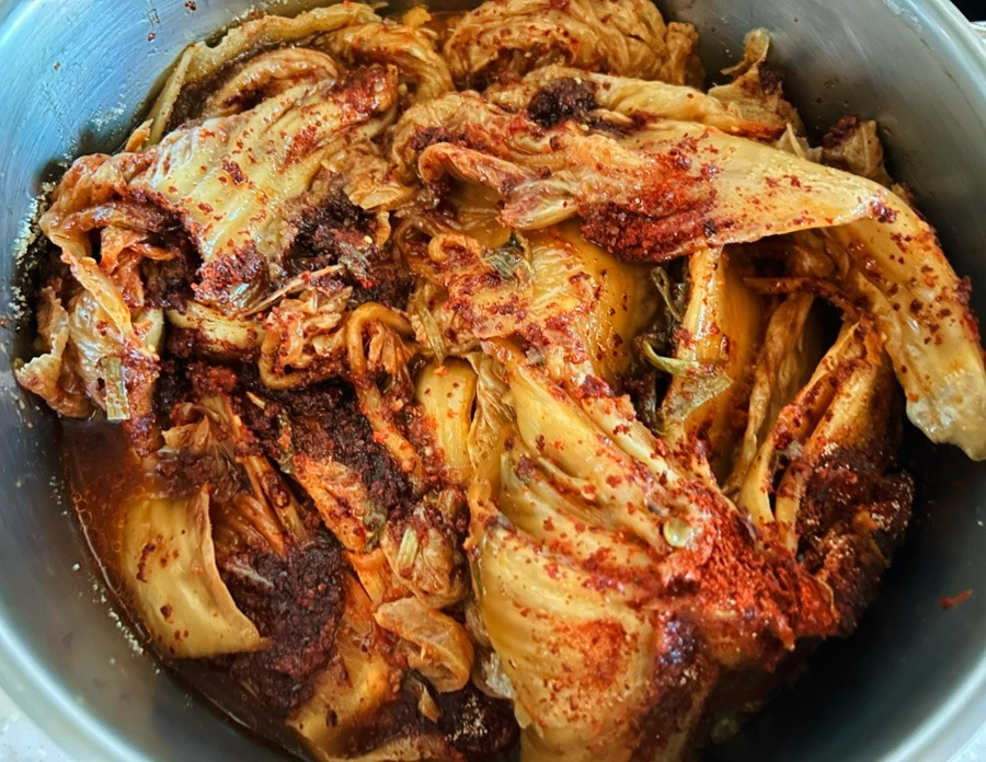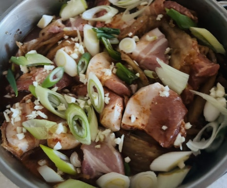신김치라서 신맛을 중화시키기 위해 삼겹살과 설탕과 오일을 넣어 기름기 좔좔 윤기나는 김치찜을 만들었어요.