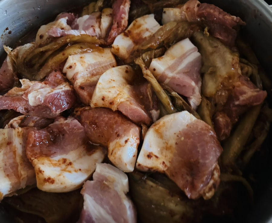 삼겹살도 부드럽고 김치도 푹 익혀서 부드럽고 묵은지 특유의 깊은 맛이 밥도둑이 따로 없어요.