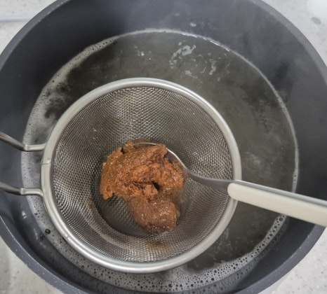 ✔️된장을 체에 걸러주면 국물이 텁텁하지 않고 깔끔해요.