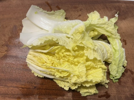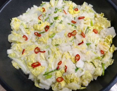 좀 더 편한 걸 추구하는 귀차니즘이 스멀스멀 올라오니 오늘은 배추를 타다닥 썰어서 부쳐 봤어요.