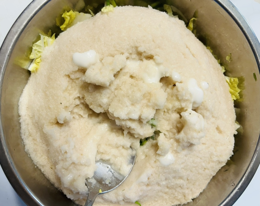 노밀가루 ~ 노글루텐 배추 부침개는 바로 감자를 갈아서 만든 반죽으로 완성하죠.