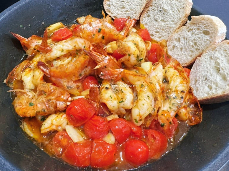 [붉은요리] 브런치 메뉴 와인안주메뉴 새우 토마토 감바스