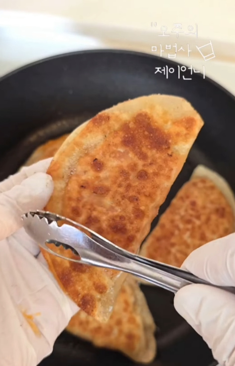 속을 꽉꽉 채우지 말고 조금 남겨두어야 속 없는 테두리 부분에 더 쉽게 접히고 맛있게 즐길 수 있습니다.