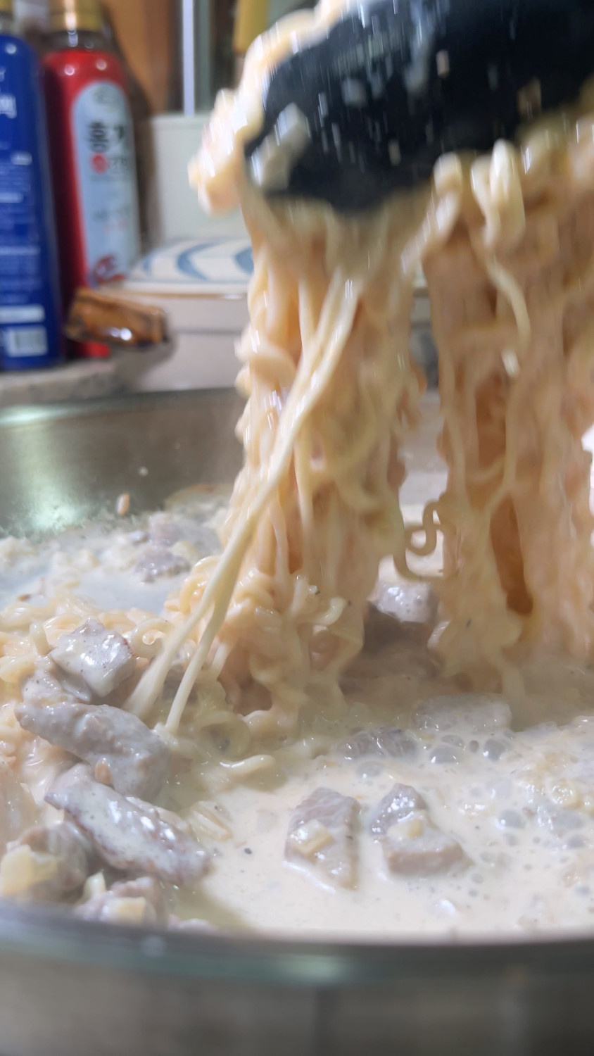 라면으로 크림 파스타를 만드는 독특한 방법을 소개합니다!