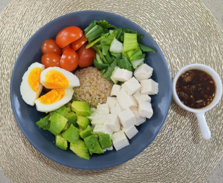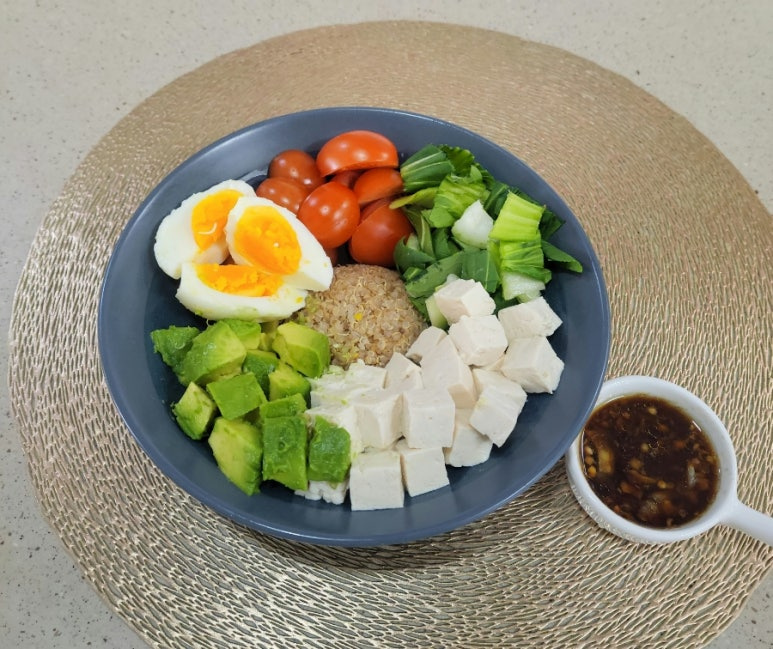 포케는 세련된 브런치 메뉴, 건강한 다이어트 식으로 인기입니다. 큰 볼에 통곡물, 다양한 채소를 잘게 썰어 넣고 연어, 새우 등과 같은 해산물과 섞어먹는 형태가 "기본형태"지만 두부로 ( 채식 위주로~) 깔끔 담백하게 먹는~ "퀴노아. 두부 포케"를 소개합니다. 퓨전 오리엔탈 드레싱이라 할 수 있는 "들기름. 간장 드레싱"의 맛과 풍미는 부드러운 두부, 계란,아보카도와도 은근히 잘 어울립니다 ."두부 샐러드" 느낌으로 즐기는~"아보카도.퀴노아.두부 포케"를 간단하고 든든한 한 끼 식사로도 추천합니다.