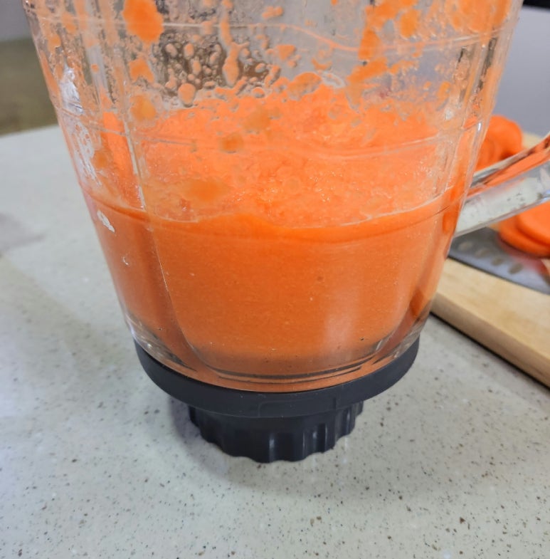 6. 당근은 2번 나누어서 갈기. 수분이 적어서~1회당 물 300ml 추가해서 갈기.