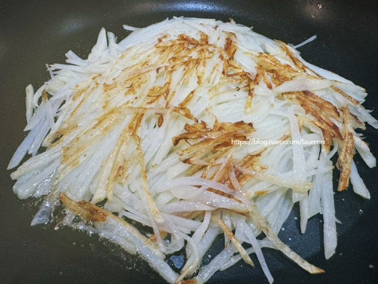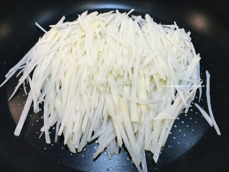 감자를 채썰어서 수분을 날리고