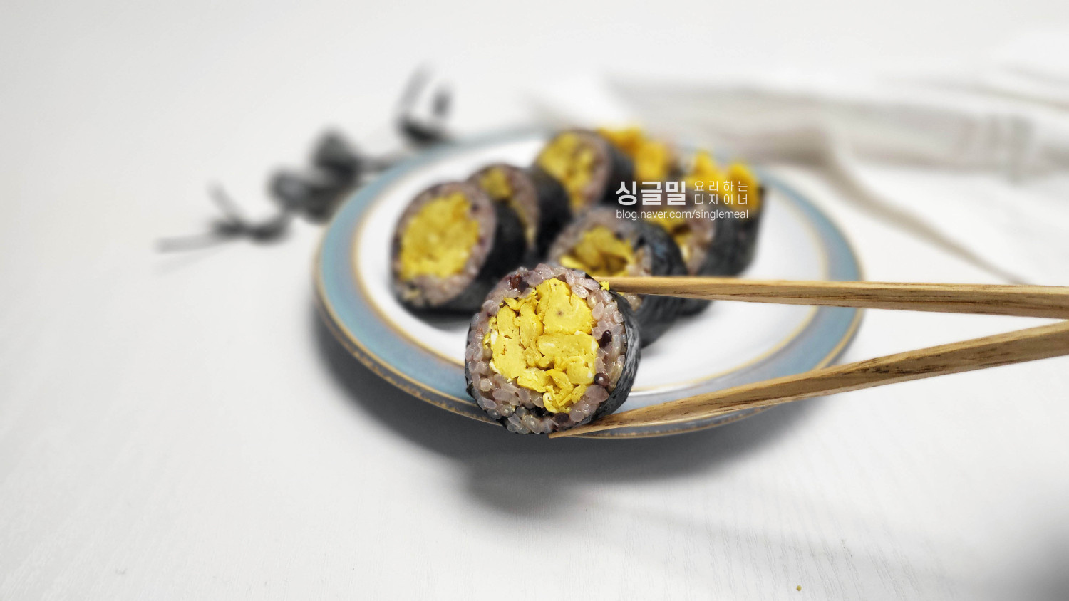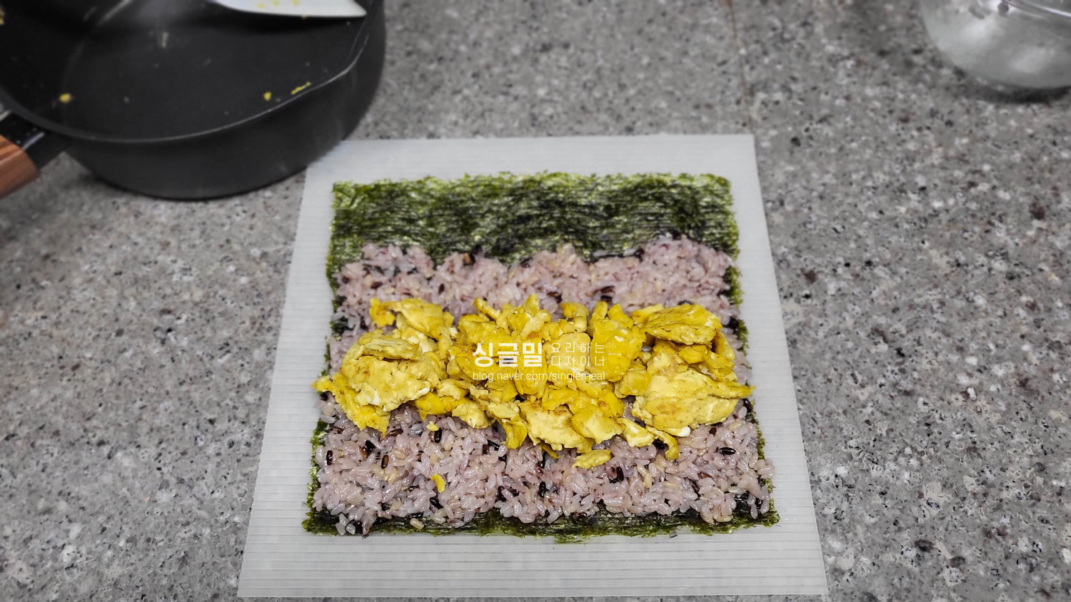 밥 위에 계란을 올리고 잘 말아주면 #안성재김밥 완성.