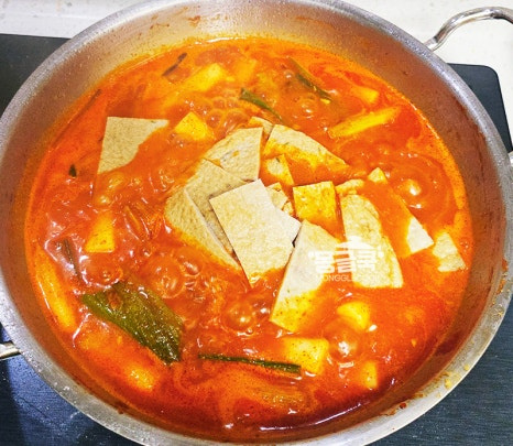 이제 물 또는 육수를 부어 센 불에서 끓여주세요.