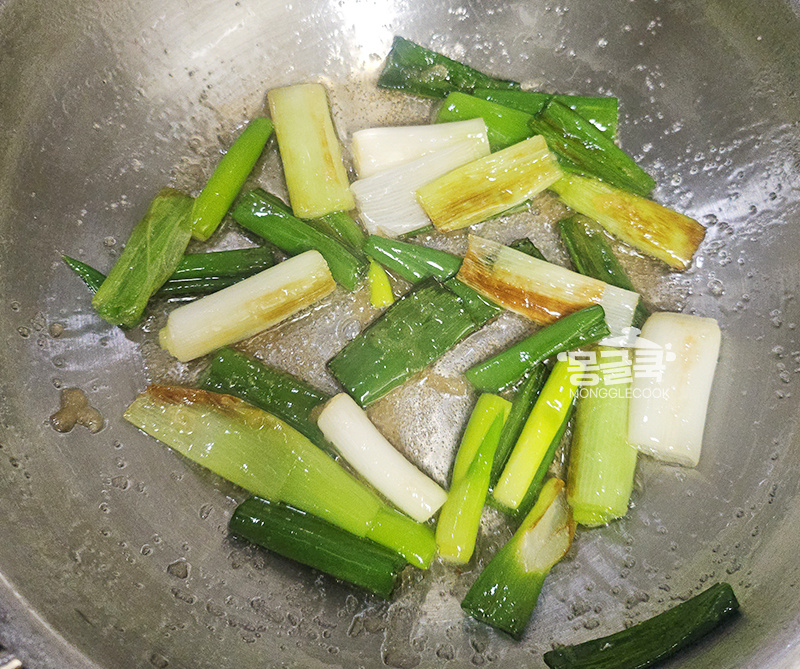 숨이 죽고 노릇해졌을 때 올라오는 달큰한 파 향이 이 레시피의 핵심이에요.