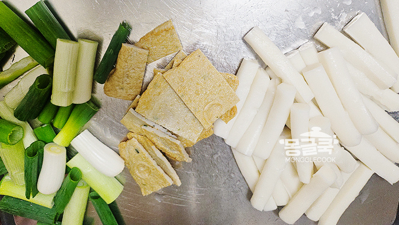 냉동 떡은 반드시 따뜻한 물에 불려 말랑하게 만들어주세요.