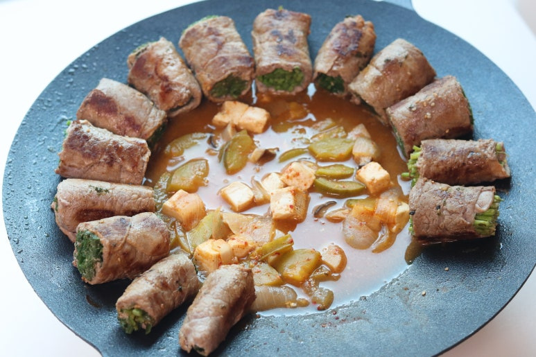 소고기 부추 말이 된장찌개