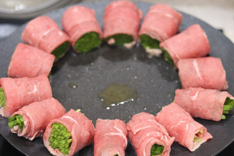 부추를 소고기로 말아서