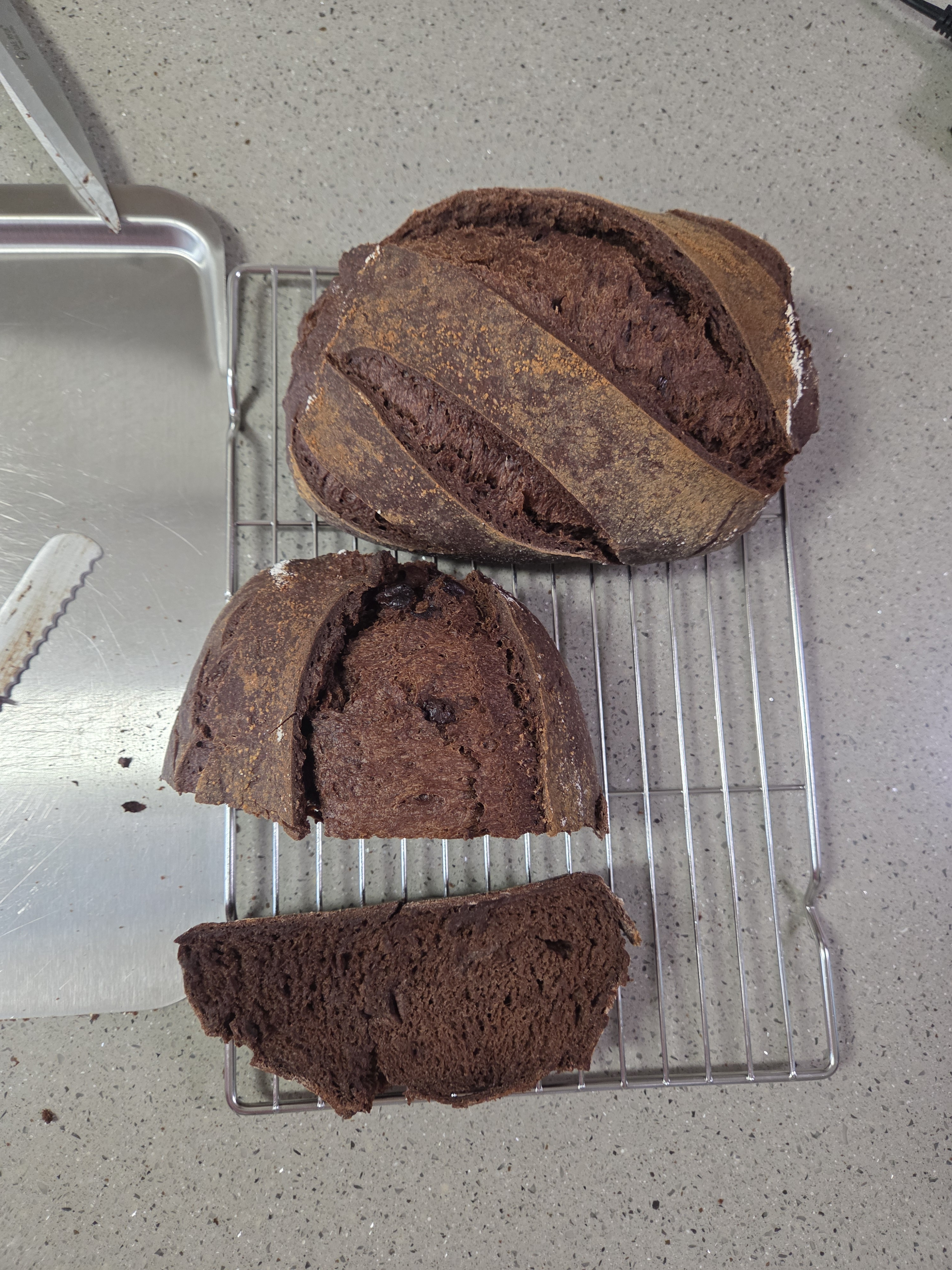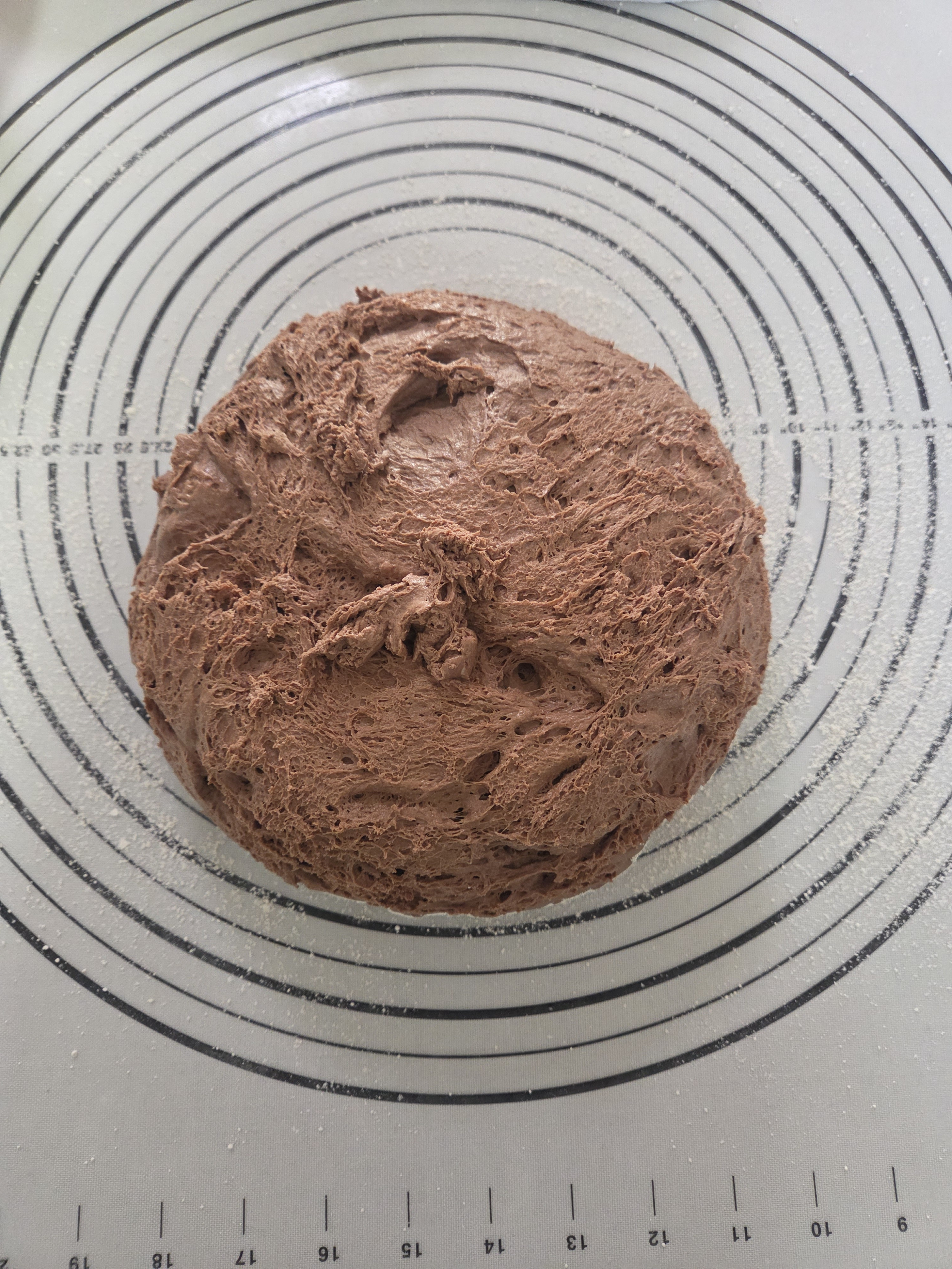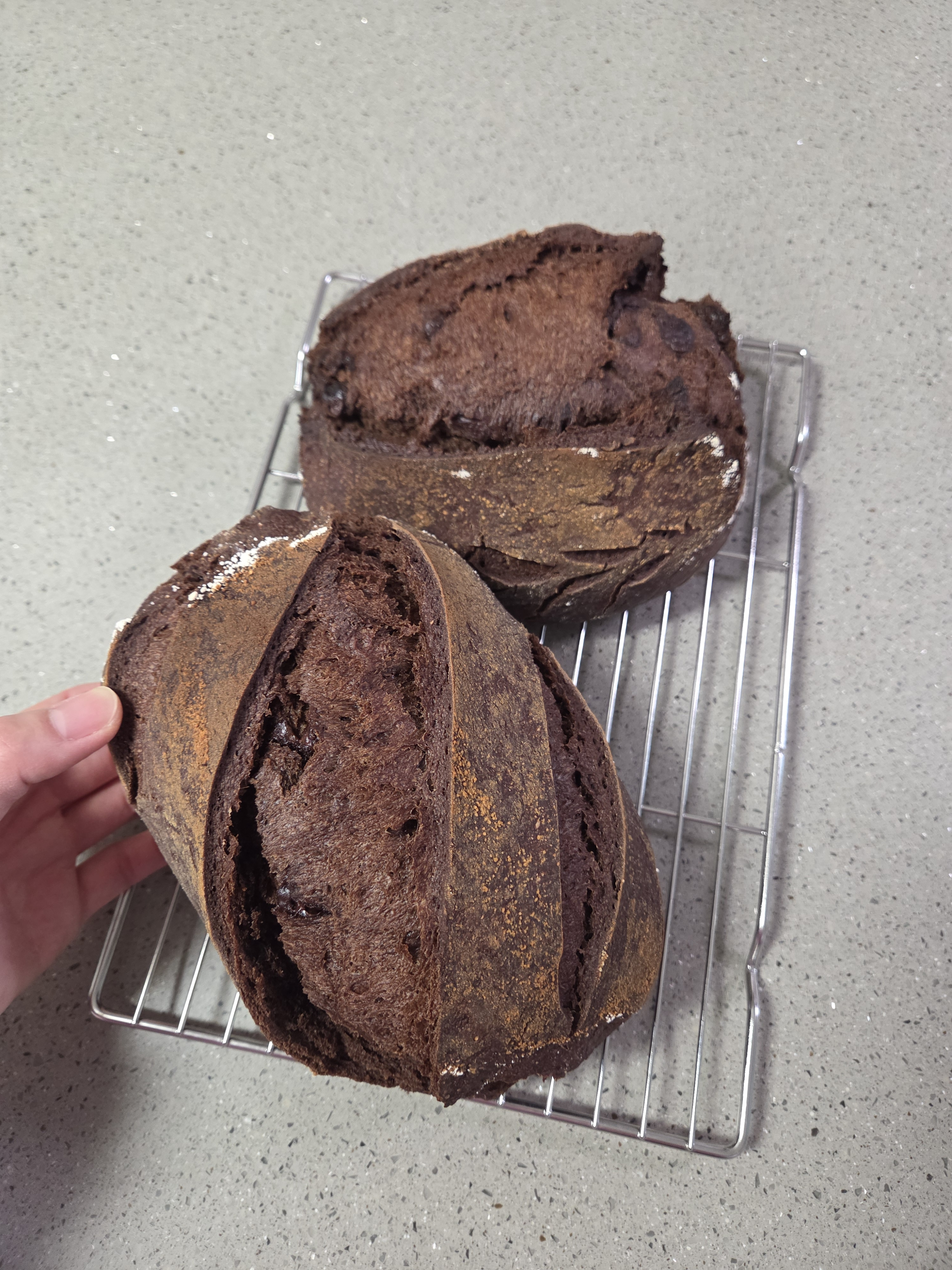 강력분 300 g , 쌀가루 300 g , 르방 165 g , 물 460 g , 소금 13 g , 초콜릿 70 g
