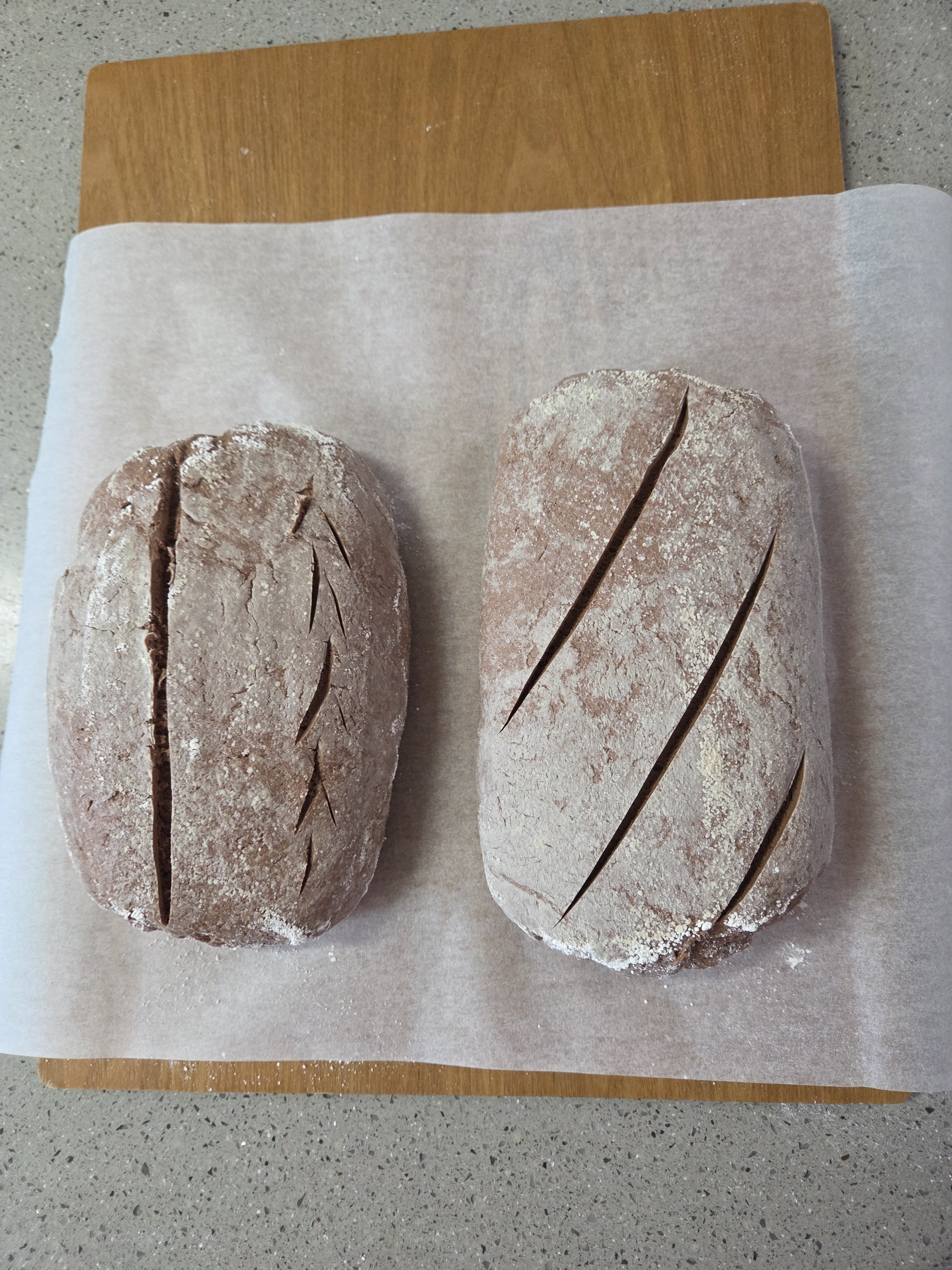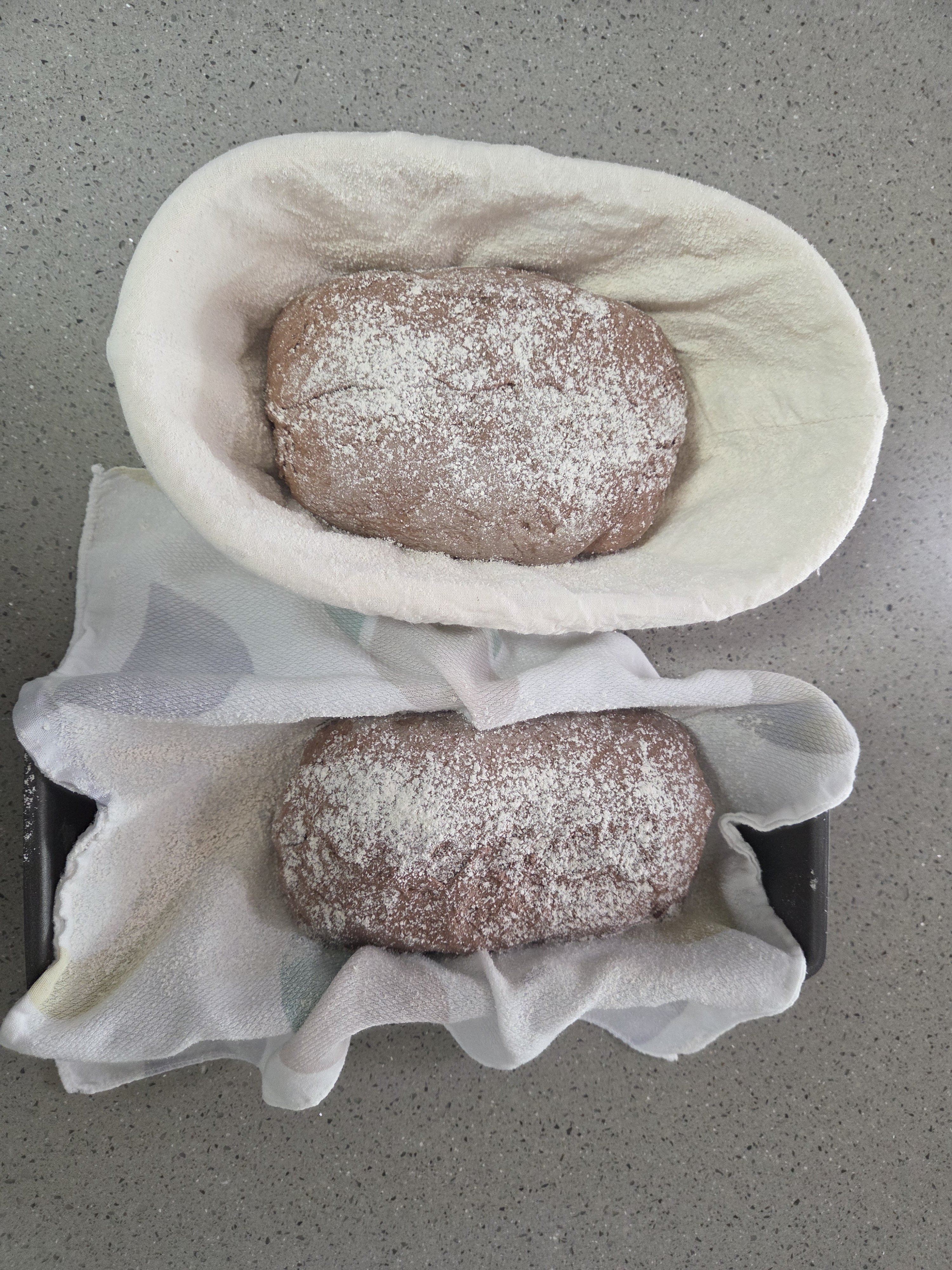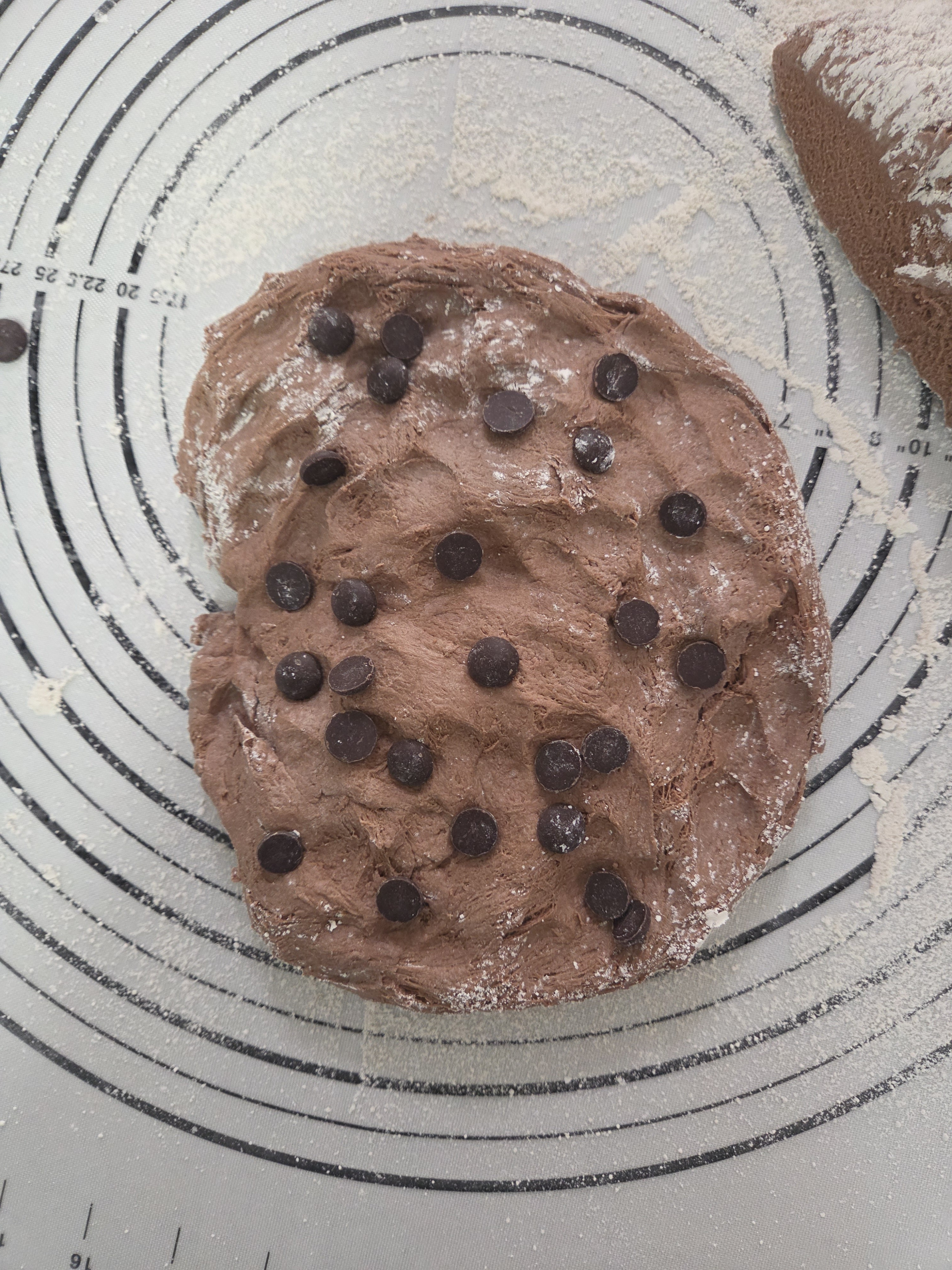 강력분 300 g , 쌀가루 300 g , 르방 165 g , 물 460 g , 소금 13 g , 초콜릿 70 g