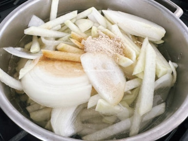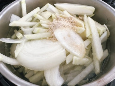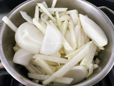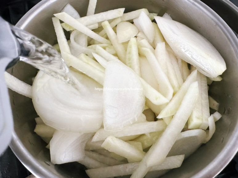 무와 양파를 듬뿍 넣어 국물까지 시원한