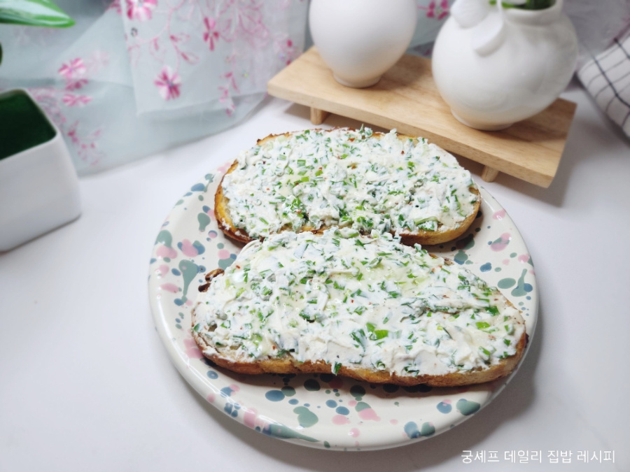 쪽파크림오픈샌드위치 만드는 법 식감이 좋은 쪽파크림레시피