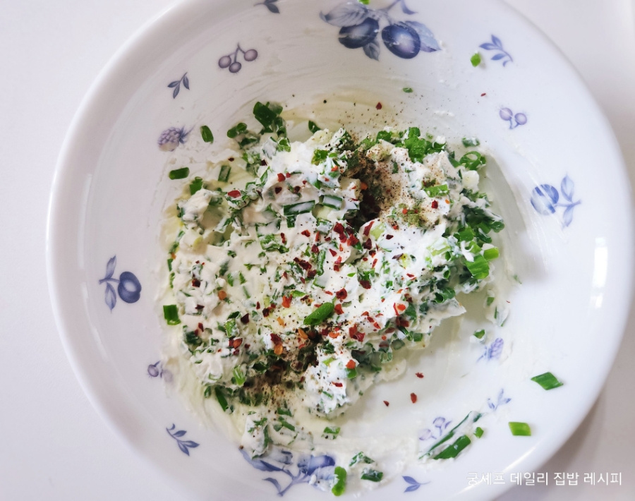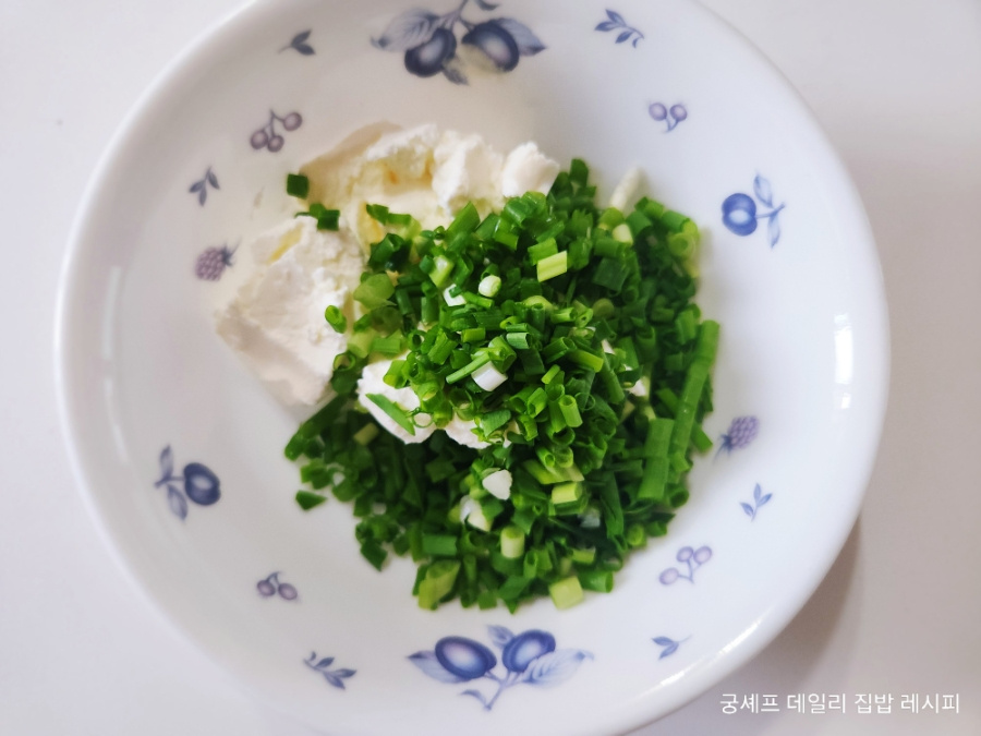 쪽파의 아삭거림과 크림치즈의 부드러운 텍스쳐가 주는 맛의 매력을 만들어 맛보면 주말 홈브런치 메뉴로 딱 좋답니다.