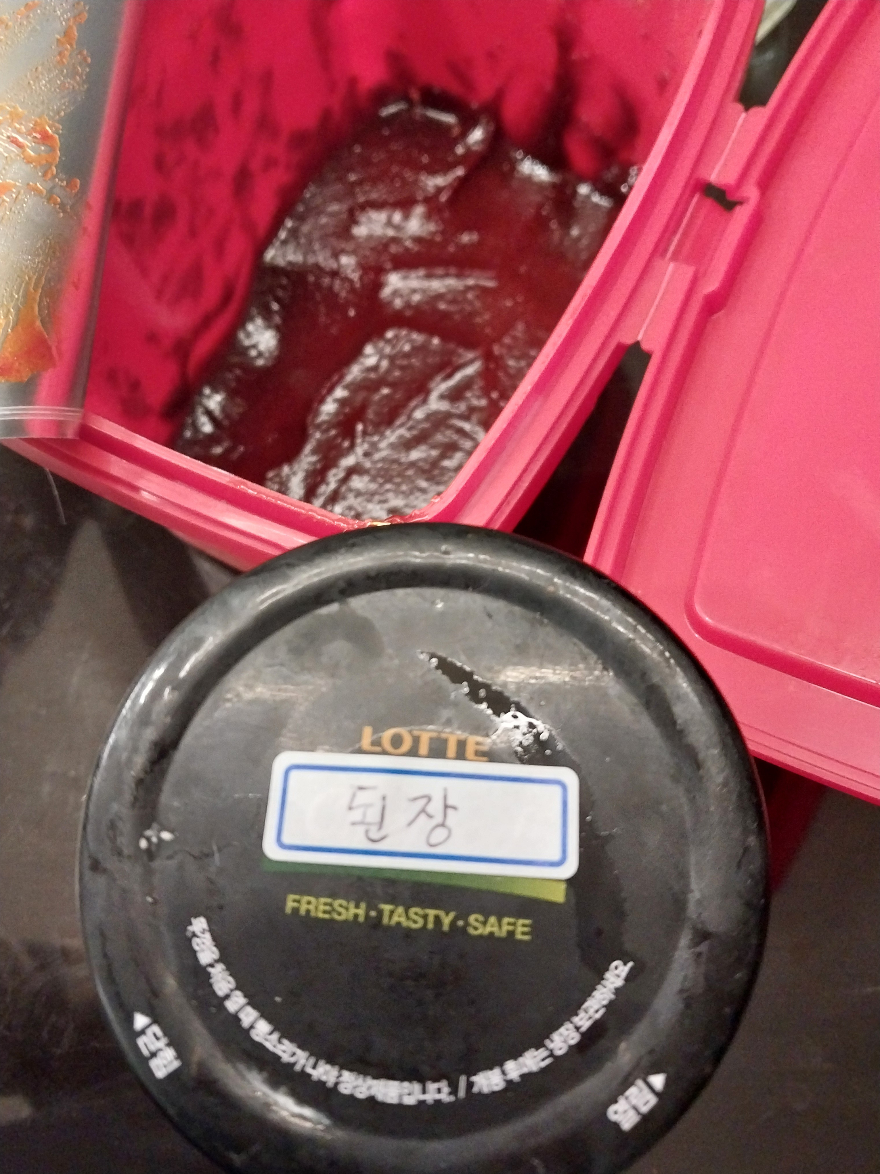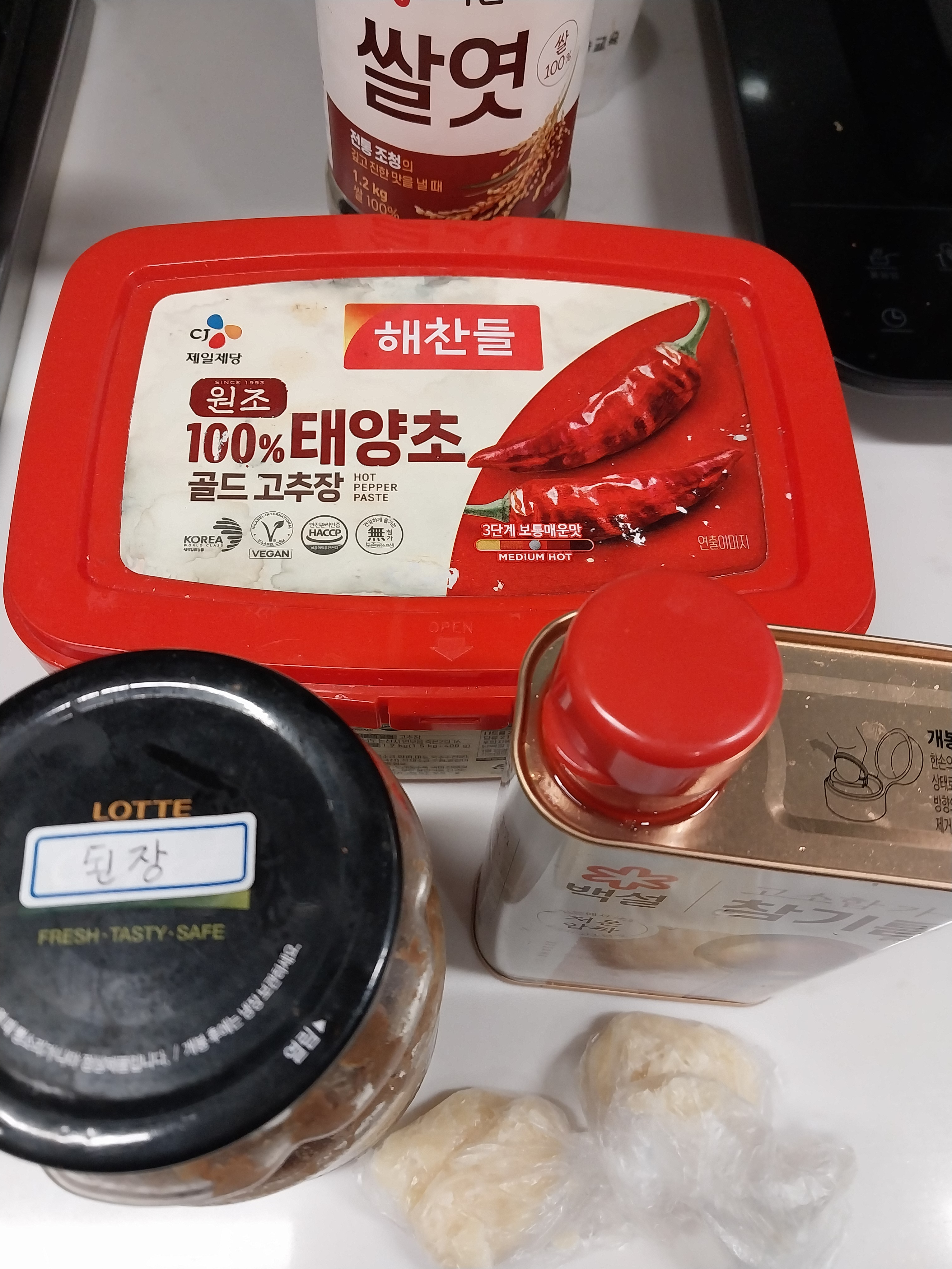 고추장 1T , 된장 1.5T , 다진마늘 1T , 쌀엿 또는 올리고당 1T , 참기름 1T , 통깨 1T