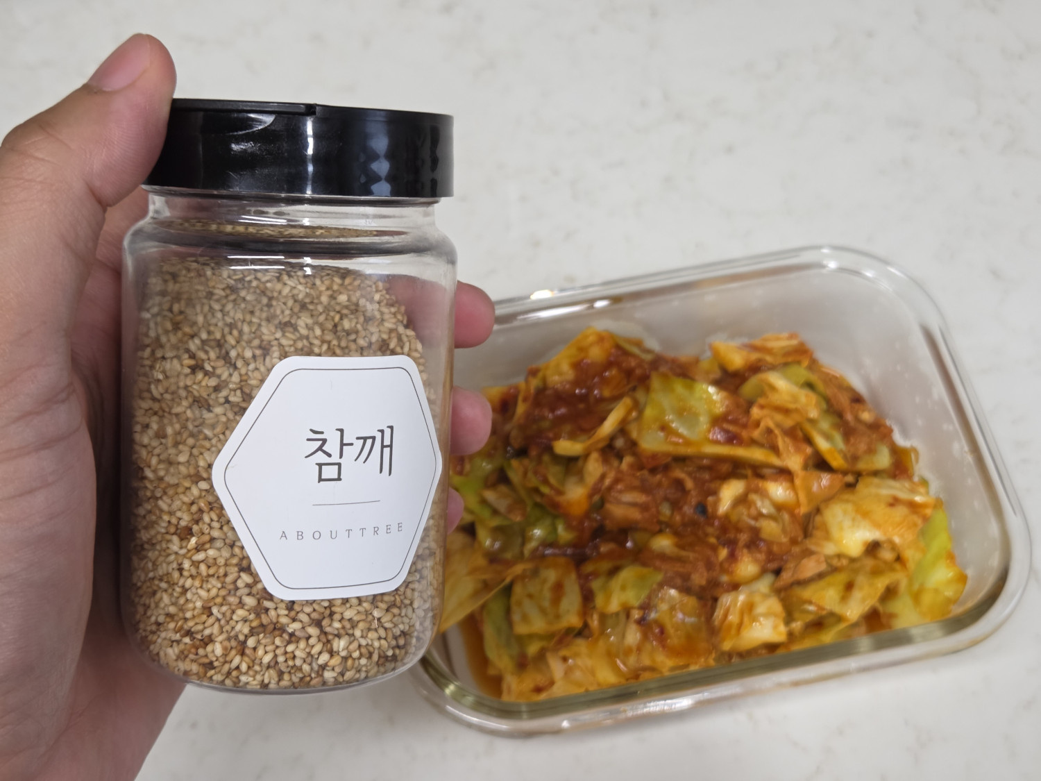 양배추 200 g , 캔참치 90 g , 식용유 2 T , 통깨 1 T