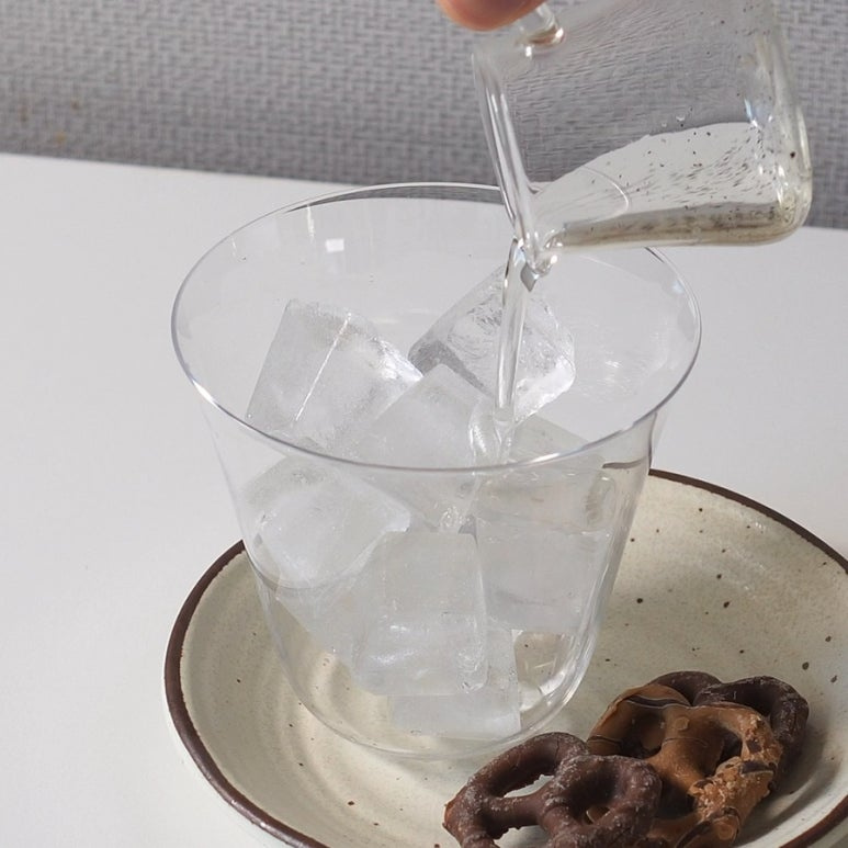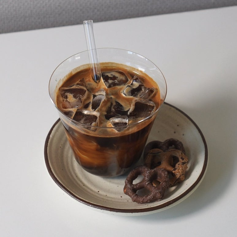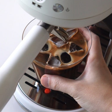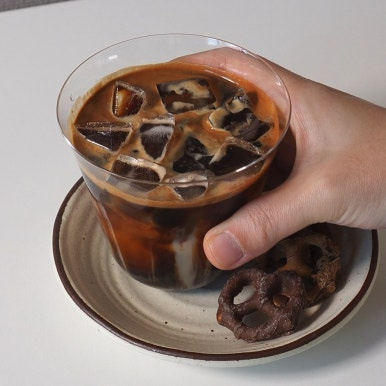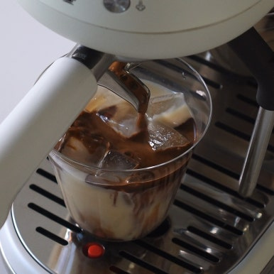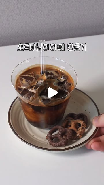 얼음 140 g , 바닐라시럽 12 g , 오트밀크 110 ml , 에스프레소 28 ml