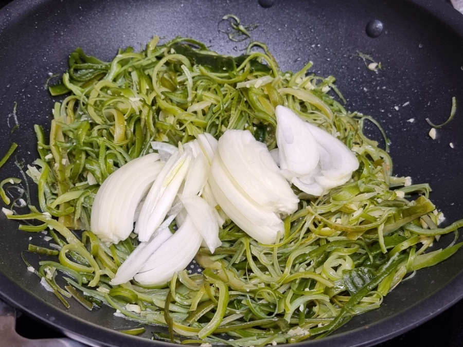미역줄기 300g , 양파 1/2개