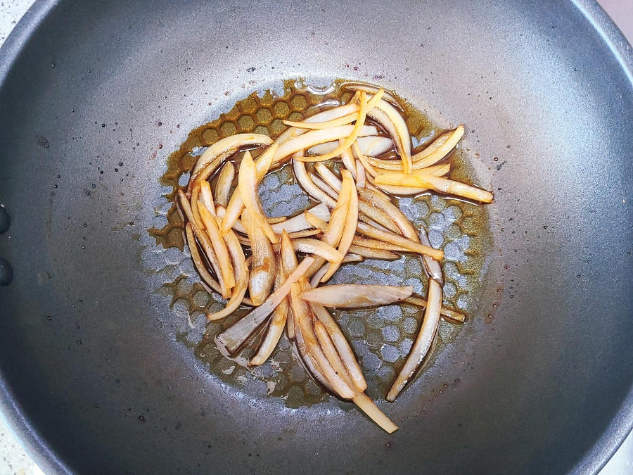 간장소스가 1/3 정도 남을 때까지 볶아주다가