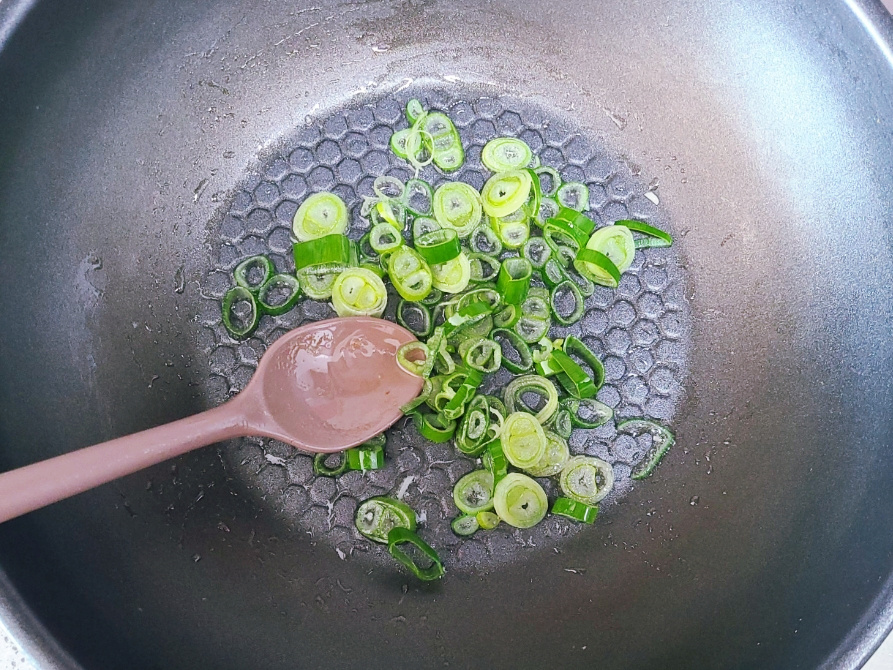 팬에 대파와 식용유 2큰술을 넣고 가스불 중약불에서 대파의 향이 올라올 때까지 볶아서 파기름을 만들면 되세요.