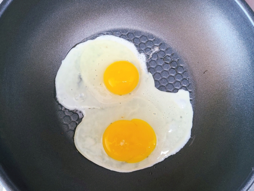 키친타올로 팬을 닦은 다음에식용유를 살짝 넣고 계란 2개를 톡 깨서 넣은 다음에 휘저어서 스크램블 에그를 만들면 되세요.