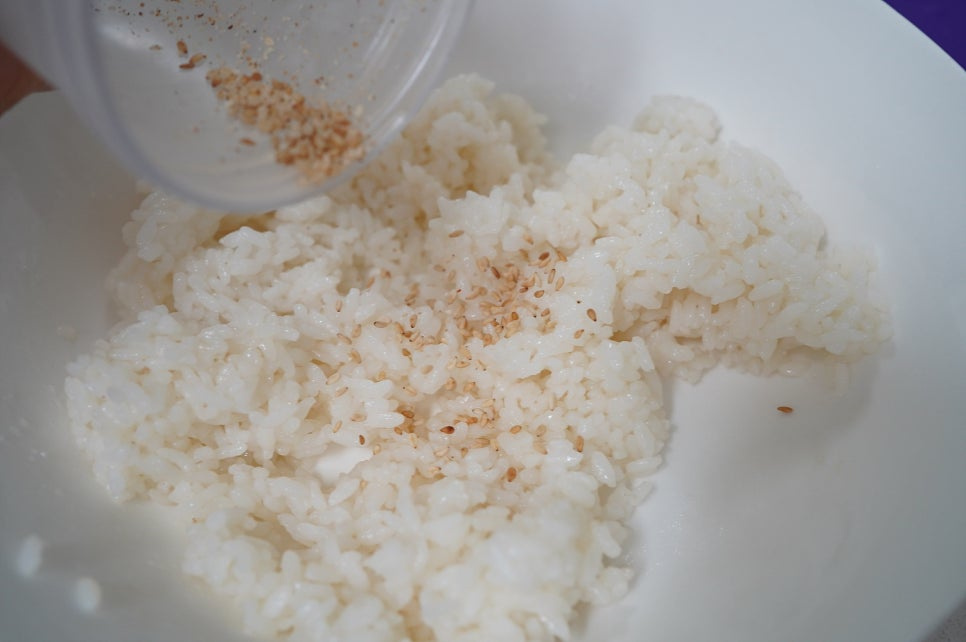 맛소금 3꼬집 , 참기름 1숟가락 , 통깨 1숟가락