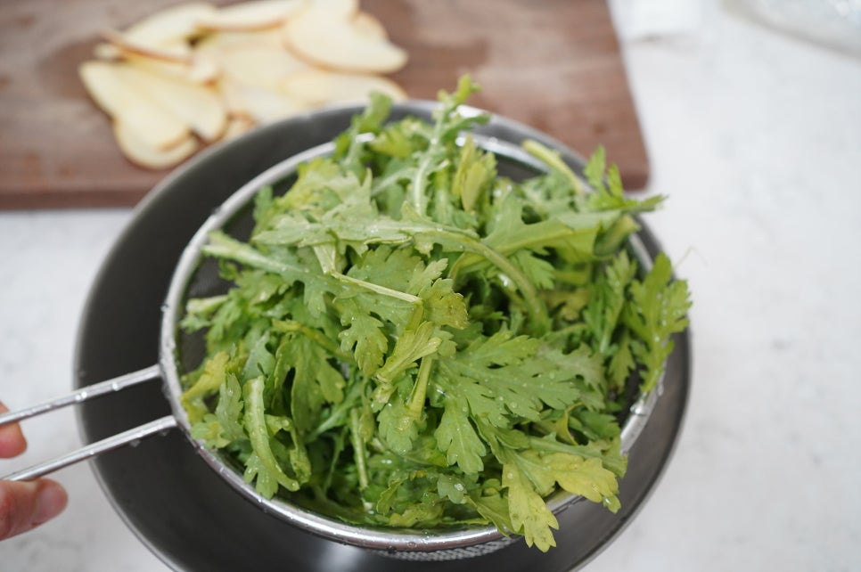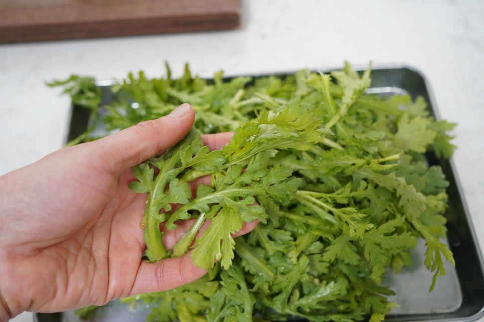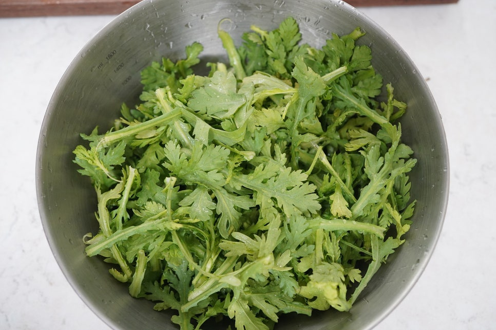 쑥갓은 특유의 쌉싸름한 향이 있어 호불호가 많이 갈리는 잎채소 중에 하나인데요. 어릴 적엔 잘 못 먹었는데 나이 드니 없어서 못 먹을 정도로 맛있더라고요