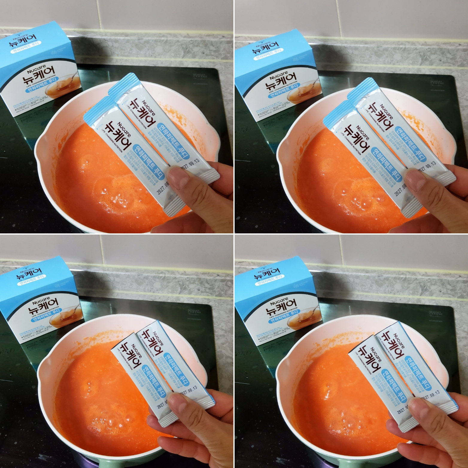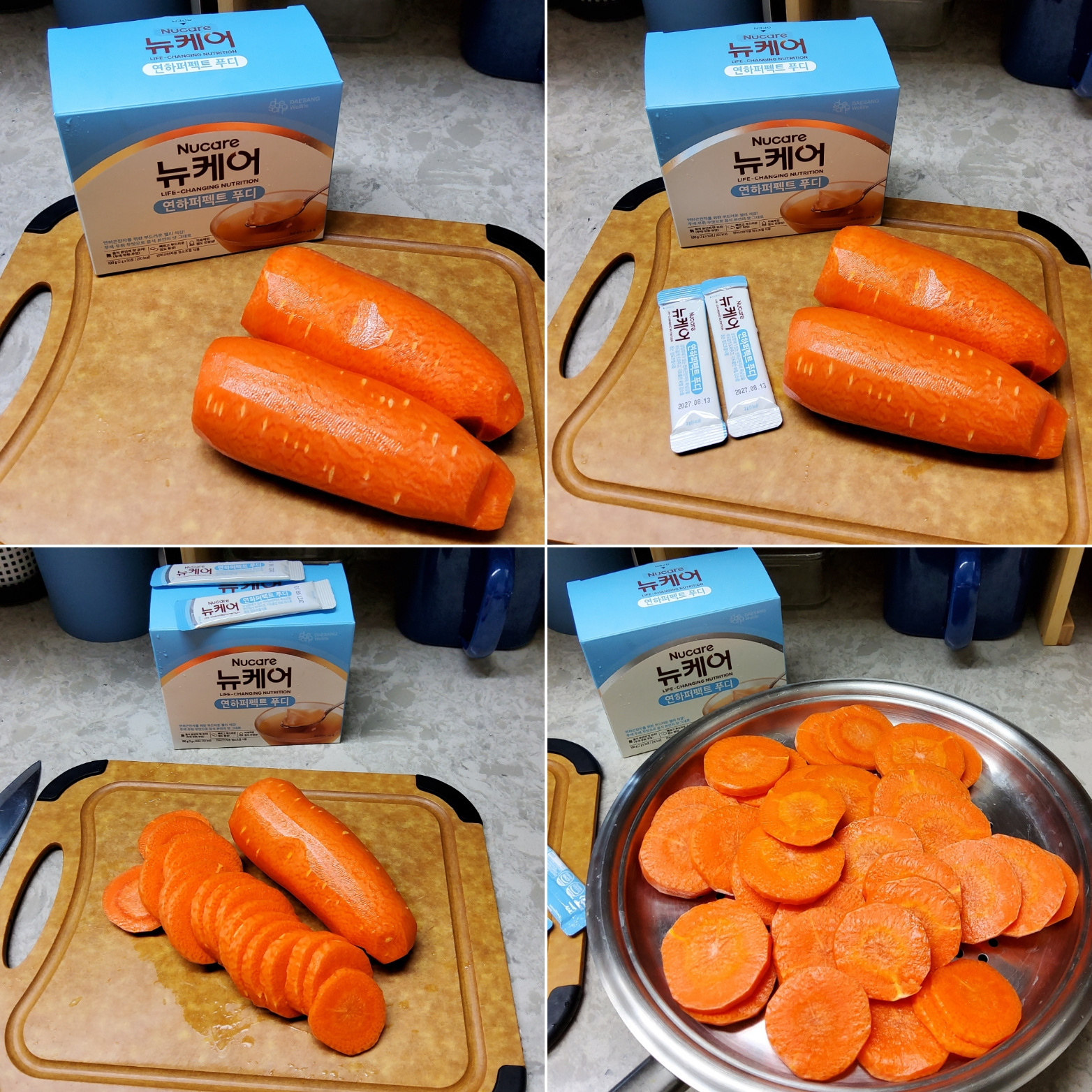 당근 2개 , 소금 약간만 , 물 200ml , 연하퍼펙트 푸디 2포