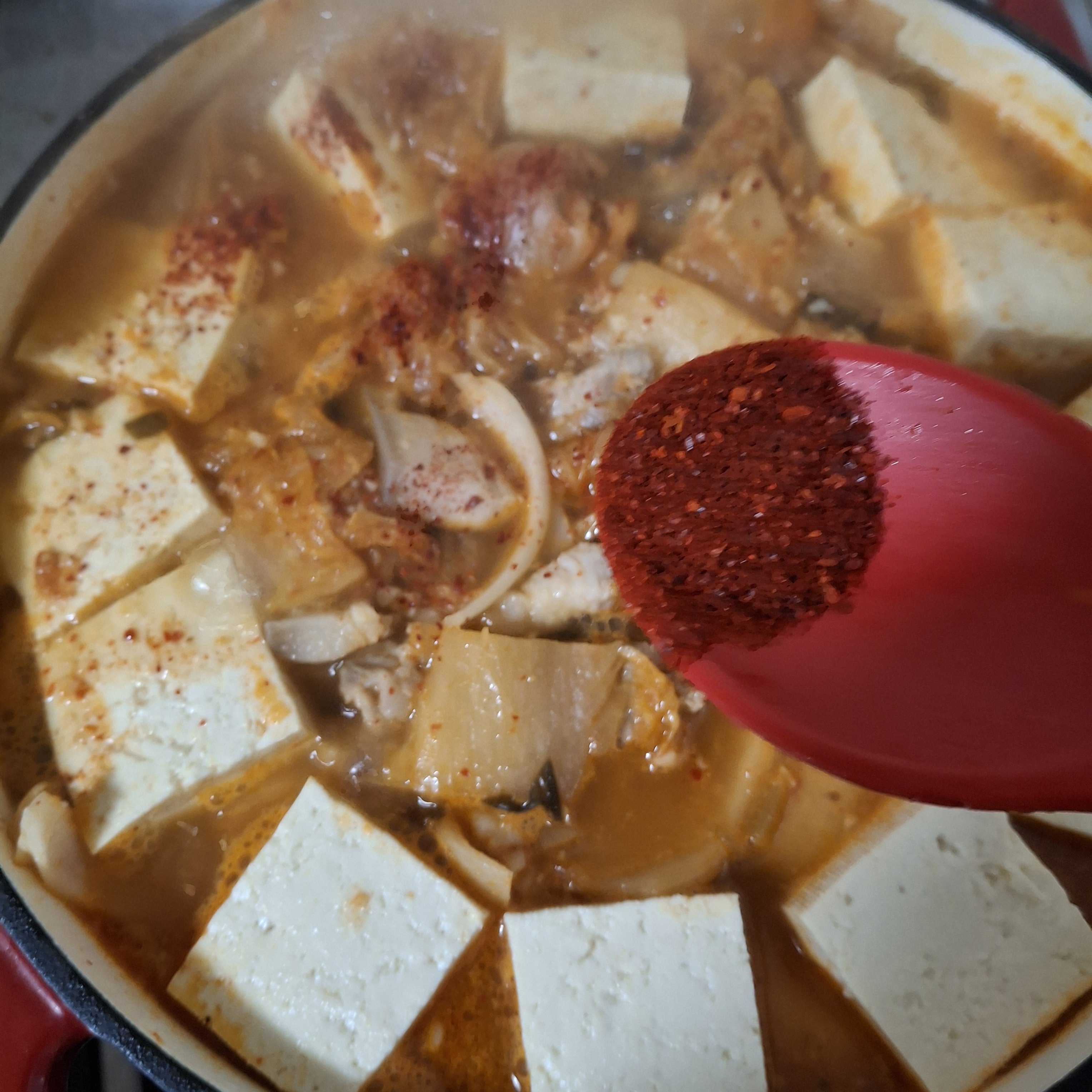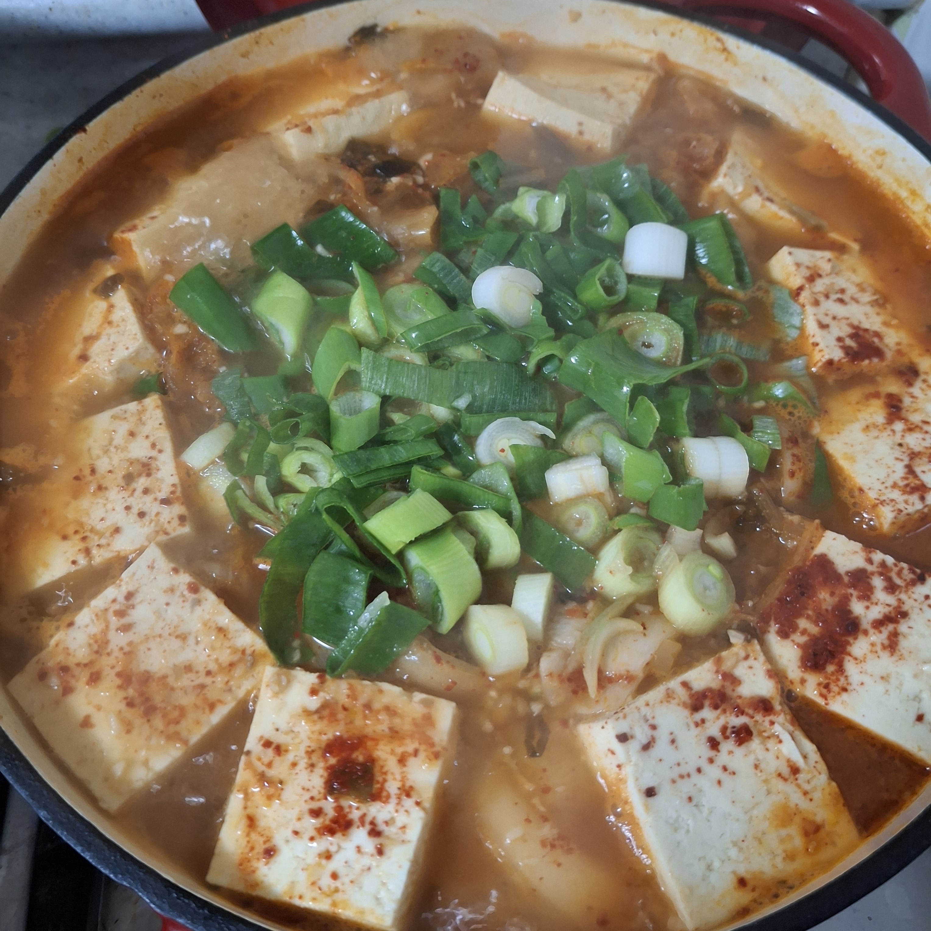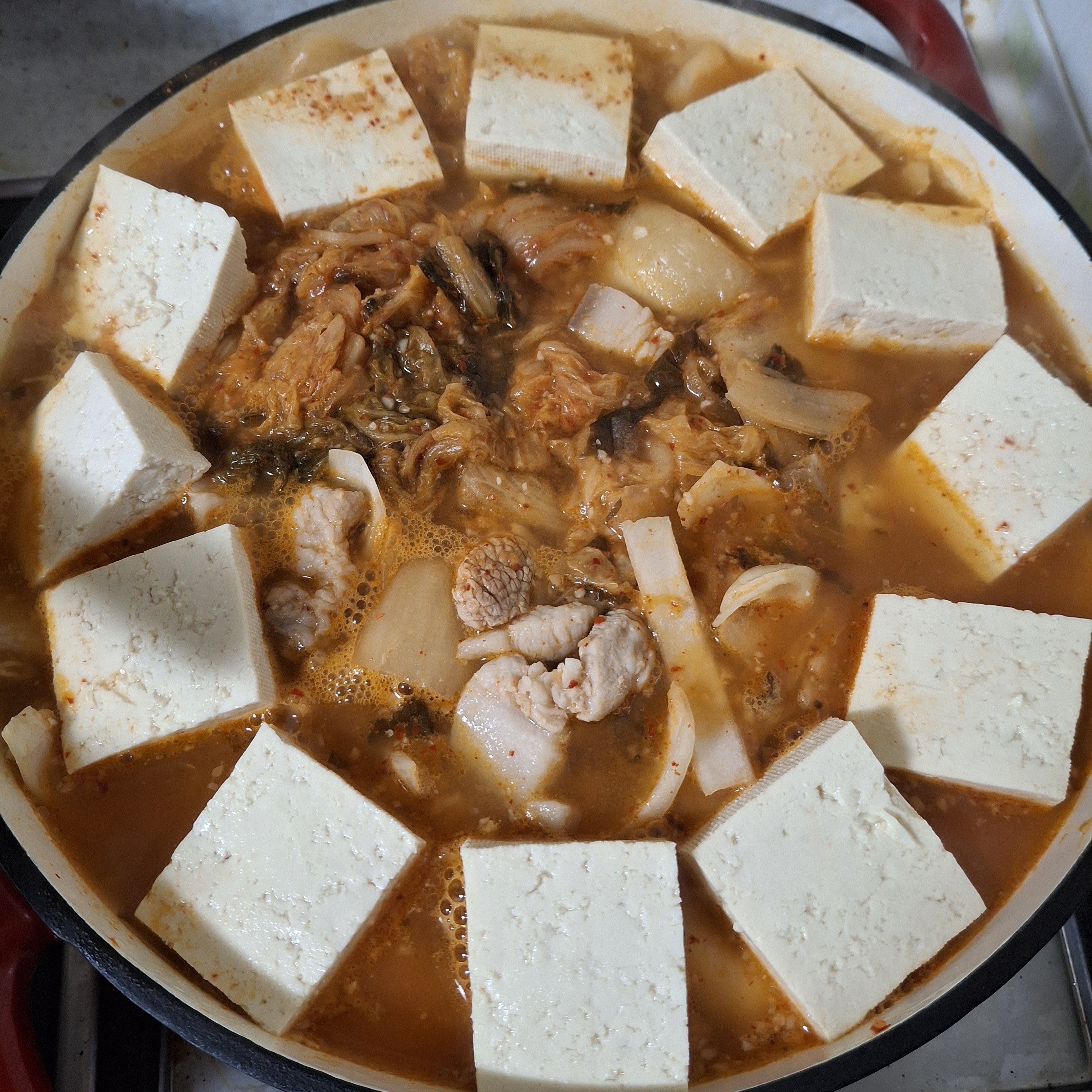 김치찌개에 고기와 두부를 넣어 푸짐하고