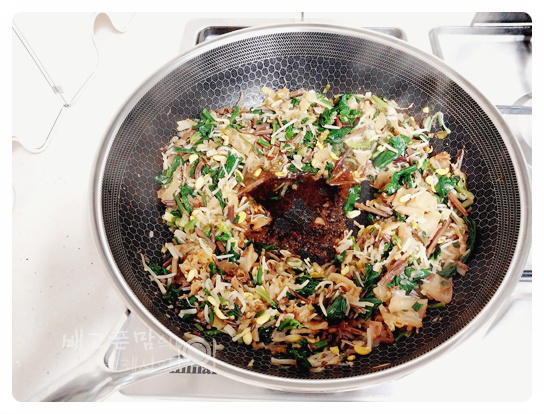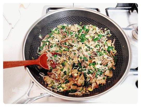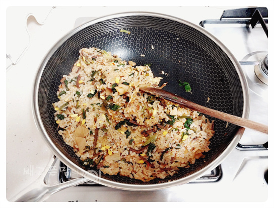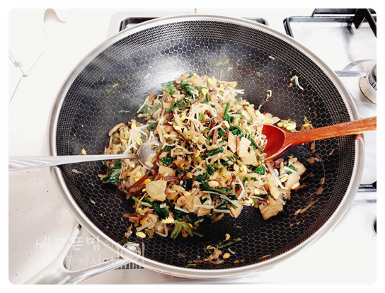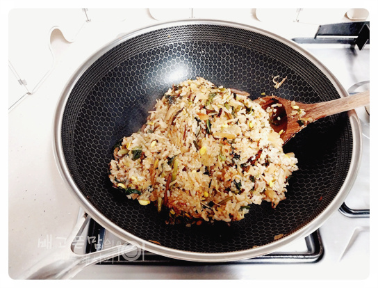 각가지 나물을 잘게 잘라 넣고 볶아주면