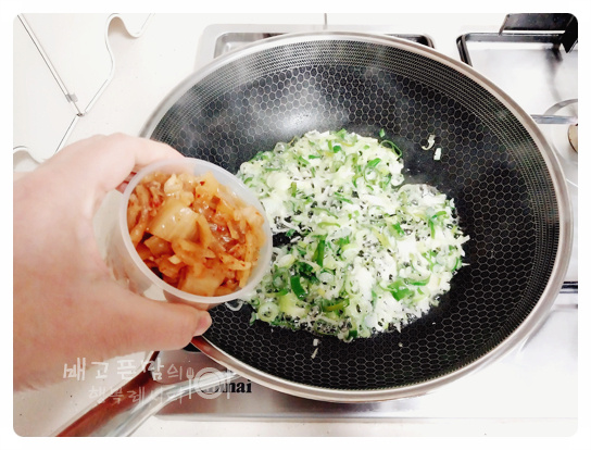 파 기름에 묵은 김치를 기름이 쏙 배어들게 볶고