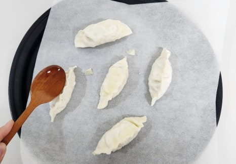 냉동만두 5 개 , 올리브유