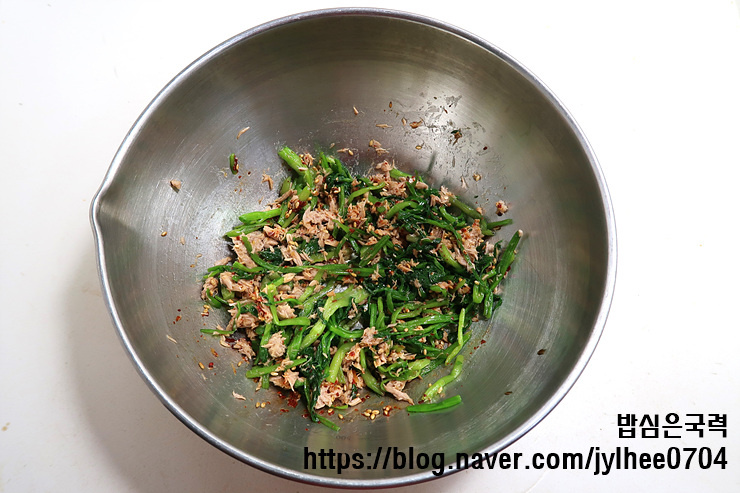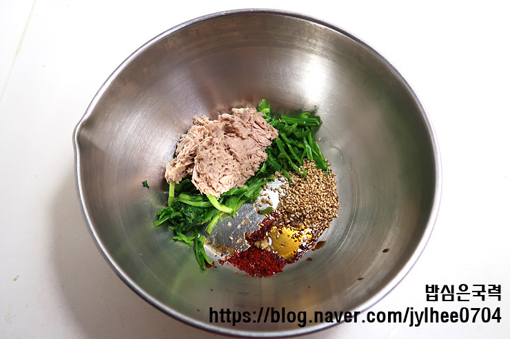 집에 있는 참치캔 하나만 있으면, 데치고 무치기만 해도 산뜻한 밥반찬이 완성돼요.