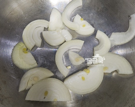 양파는 굵게 채 썰어 냄비 바닥에 깔아주세요.