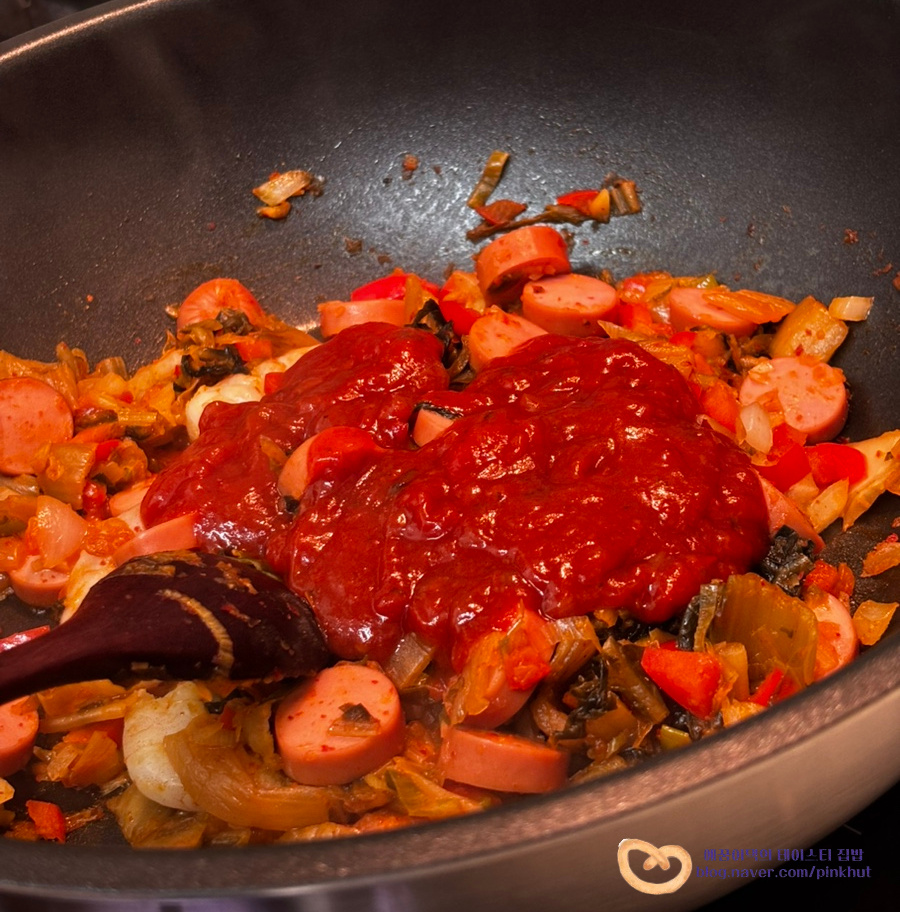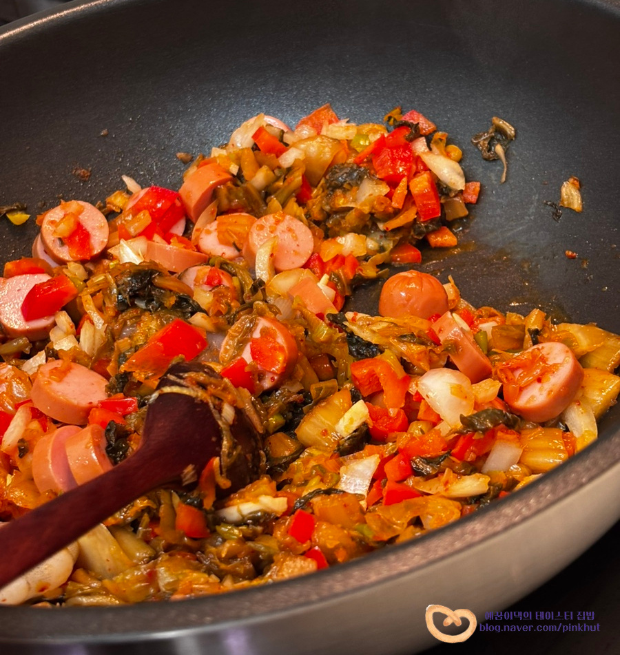 치즈와 토마토소스가 들어가면 김치의 매콤한 맛도 중화시켜 주고요, 비주얼도 너무 예쁘더라고요.