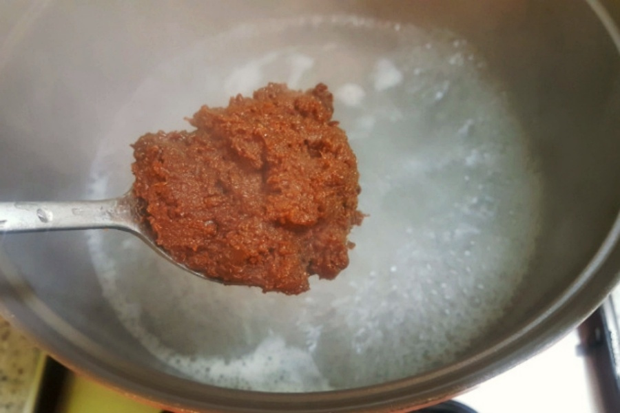 1. 집 된장마다 염도가 약간씩 다를 수 있으니 간을 보고 짜면 물을 조금 더 부어주시고 싱거우면 된장을 좀 더 추가해주시면 됩니다.