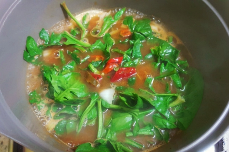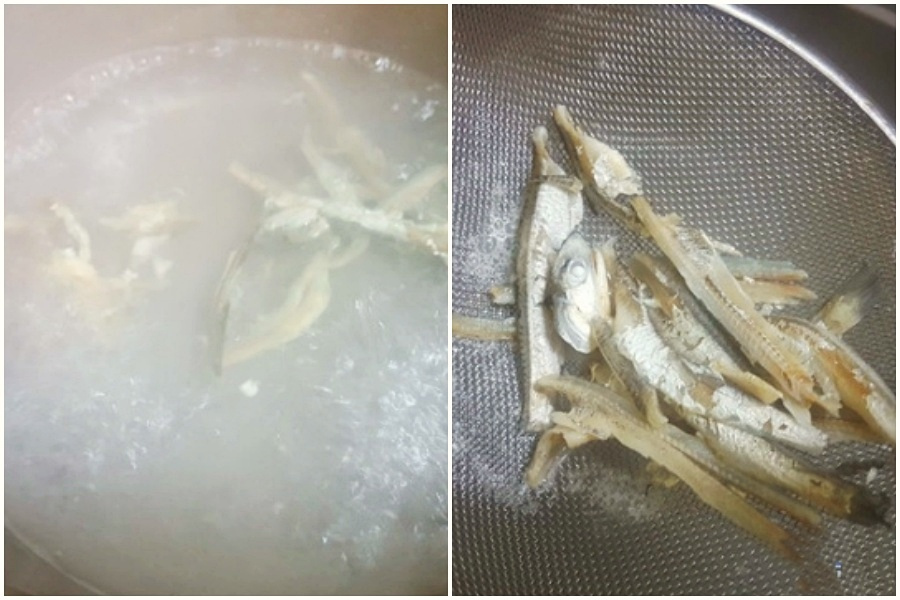 시금치 반단 , 양파 1/2개 , 대파 1/2대 , 홍고추 1개 , 멸치 7-8개