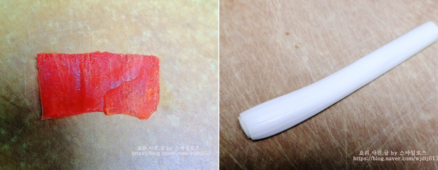 파프리카가 조금 있어 파프리카와 대파를 준비했어요