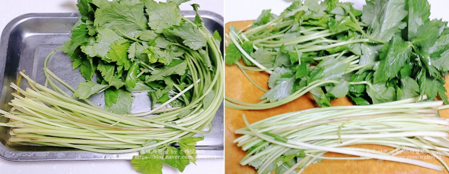 참나물을 데칠 때 줄기와 잎 부분 데치는 시간이 달라서
