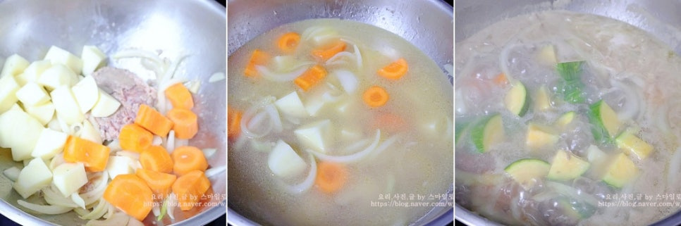 끓기 시작하고 감자가 조금 익었을 때 애호박을 넣어줍니다